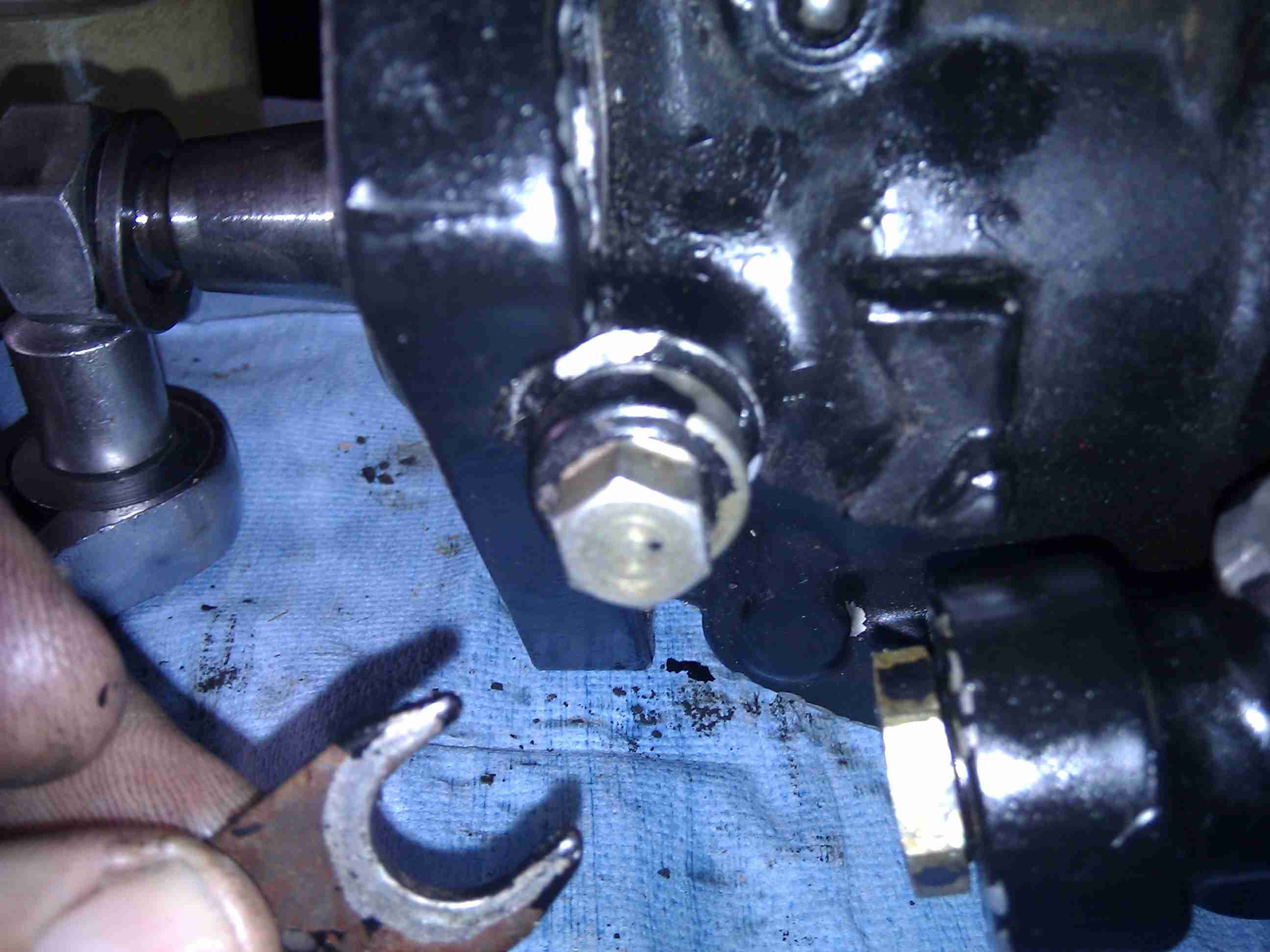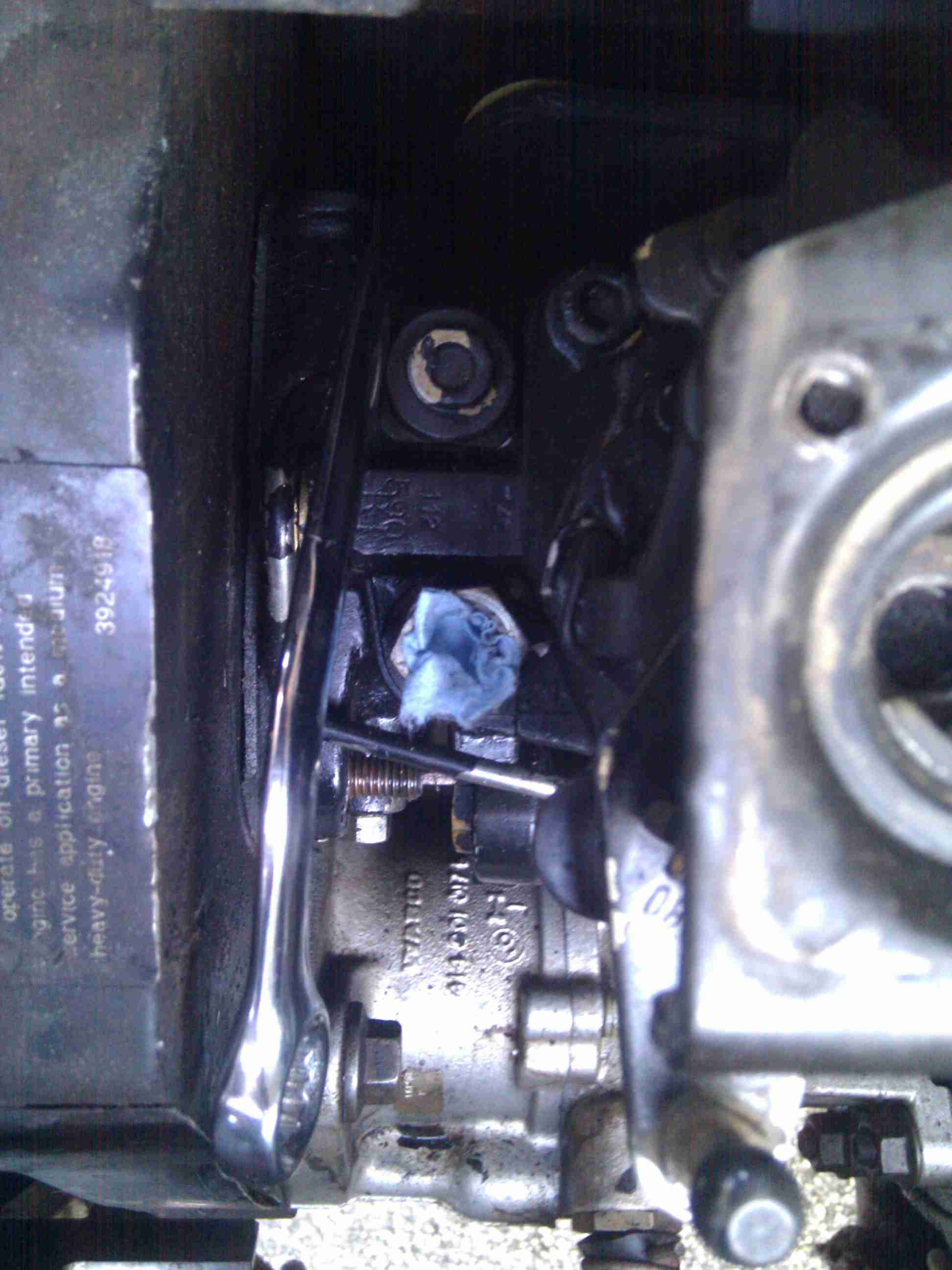 Here the fuel lines from the rear of the injection pump are layed down out of the way so the pump can be removed.