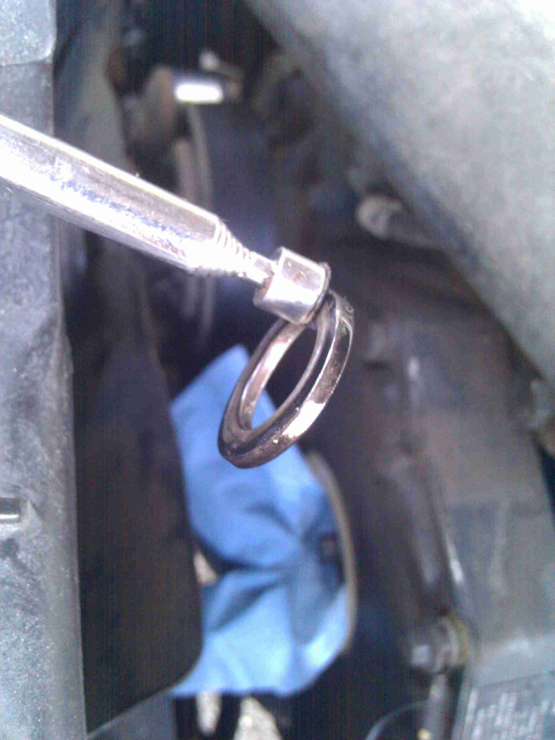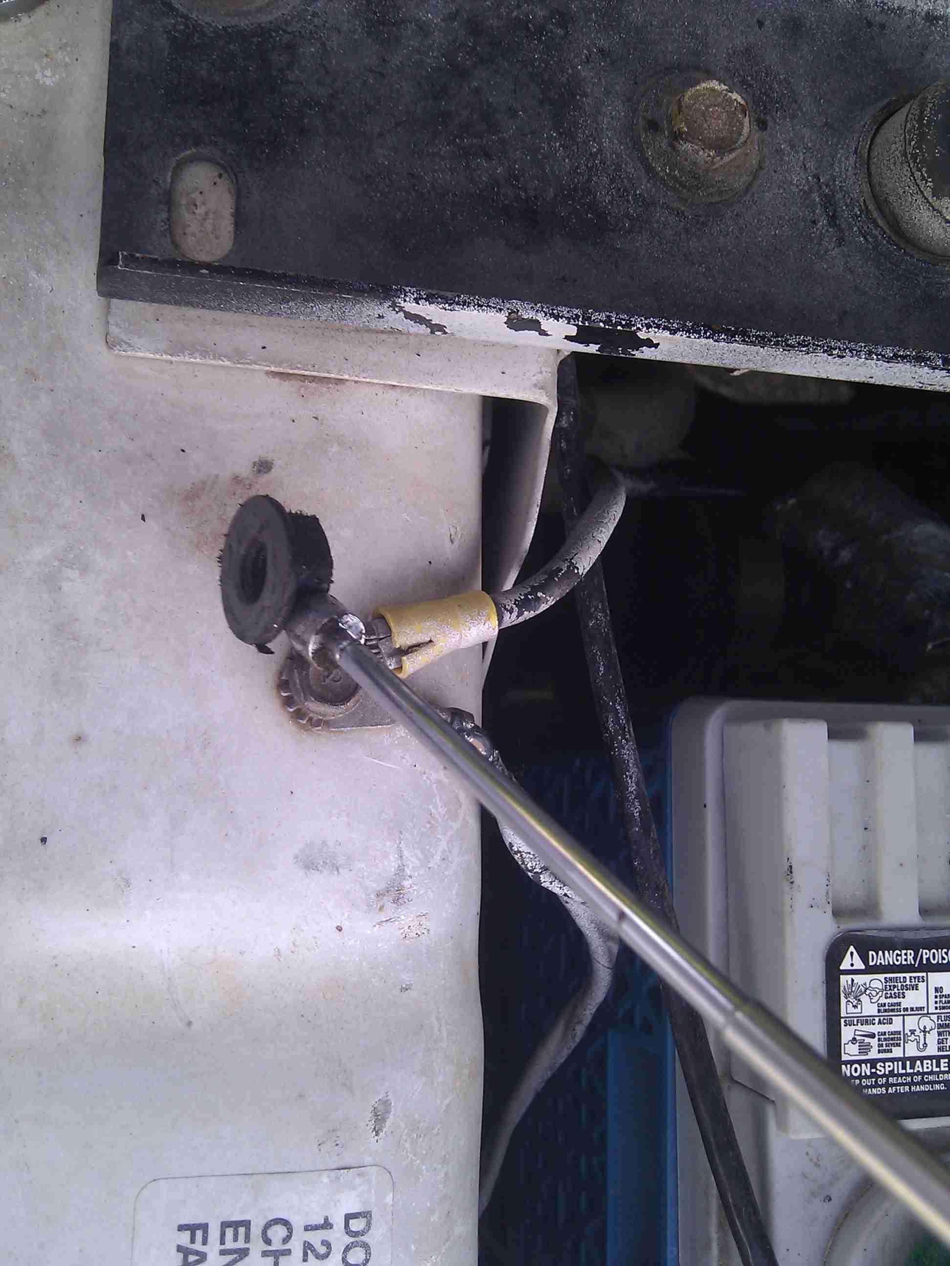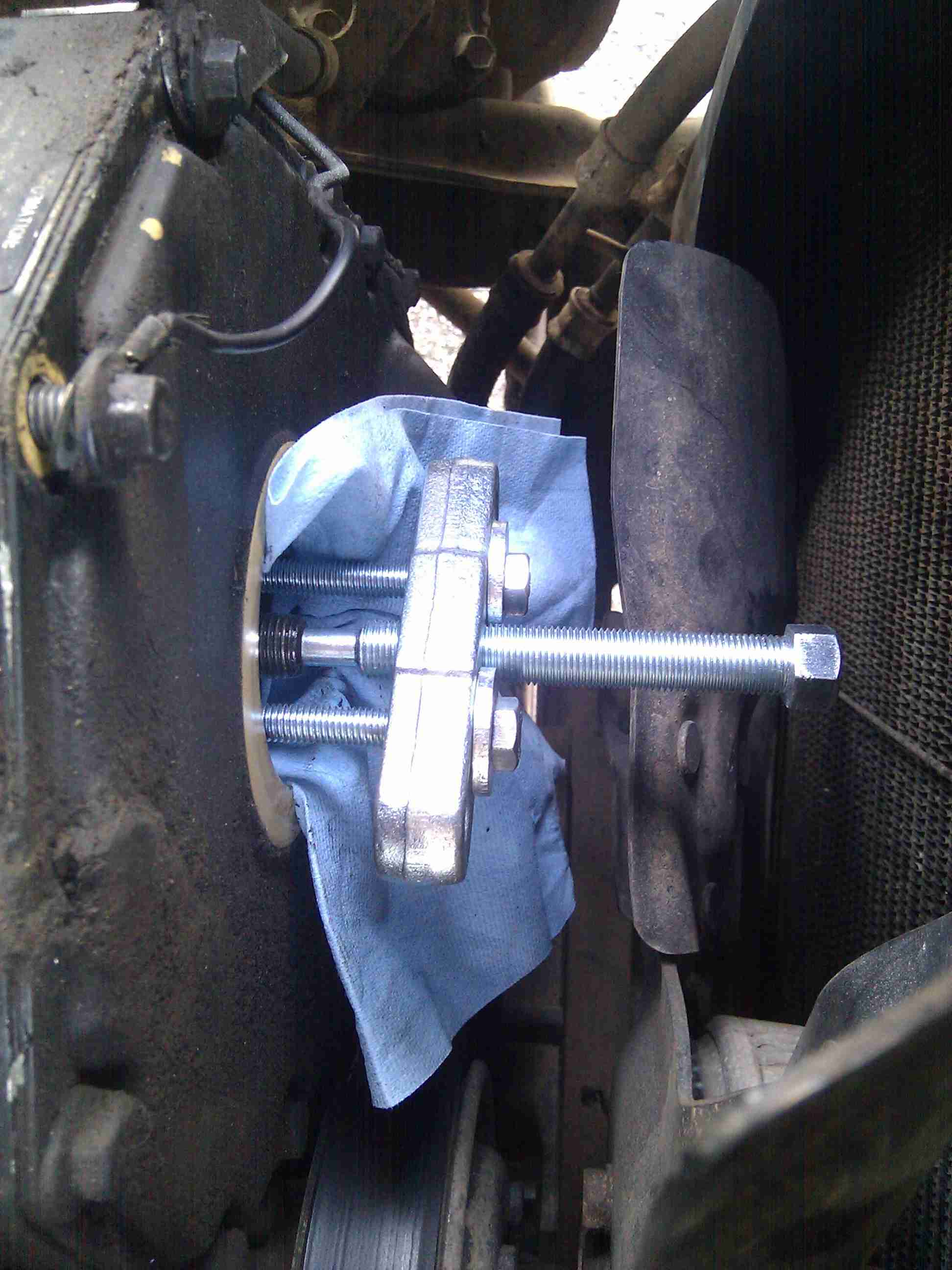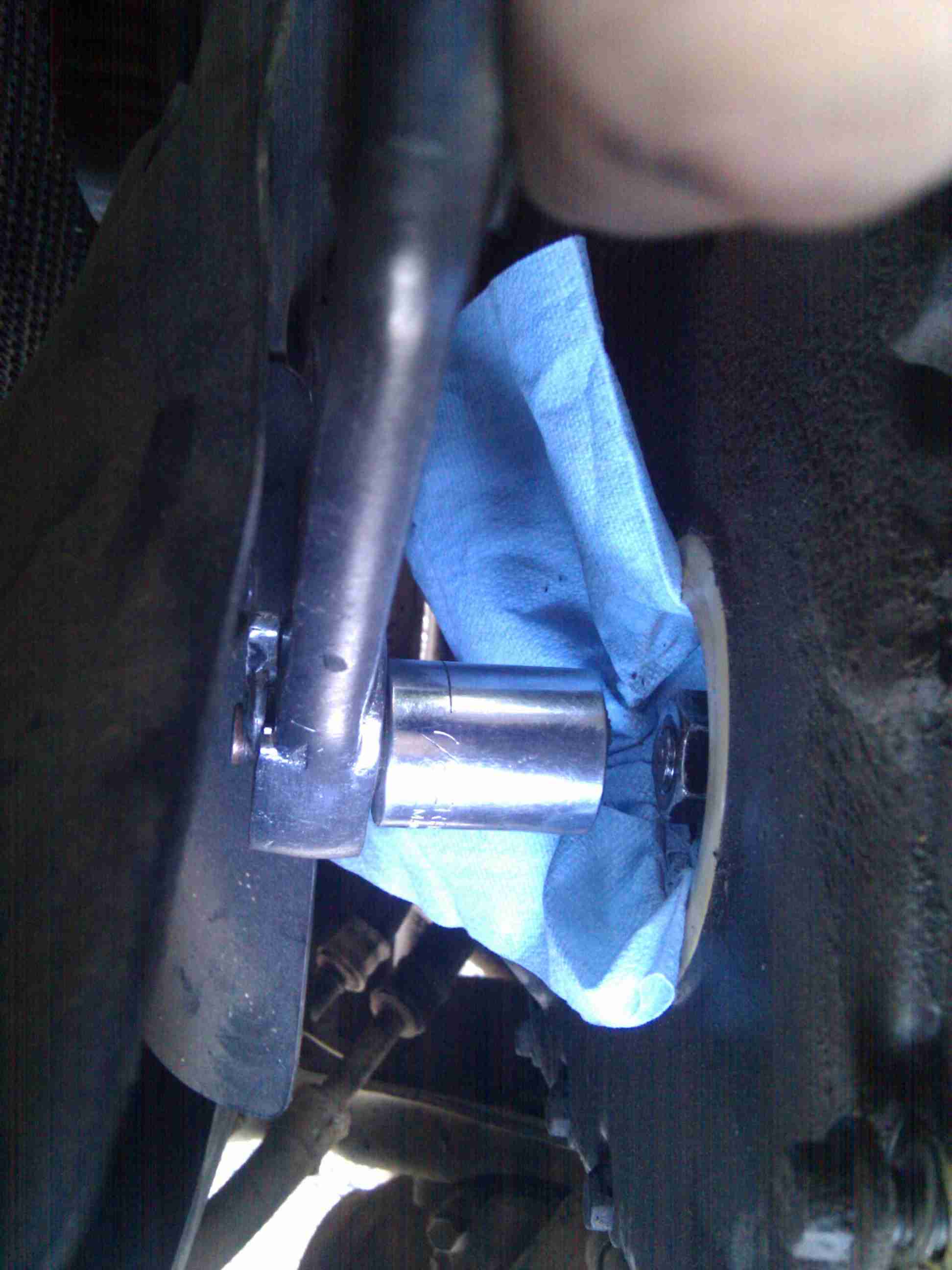 Notice the towel tucked into the opening to keep the nut and washer from falling into the housing. It also keeps dirt out that falls from so much activity in the area.
